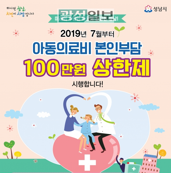 성남시(시장 은수미)는 전국 처음으로 ‘아동 의료비 본인 부담 100만원 상한제’ 시행에 들어갔다고 8월 2일 밝혔다 아동의 생명권과 건강권을 제도적으로 뒷받침할 목적으로 도입한 민선 7기 시민 약속 사업이다.