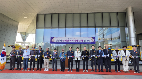 시는 10월 29일 오후 2시 시청 앞 광장에서 ‘특별교통수단(장애인 복지택시) 증차 발대식’을 열고, 새롭게 확충된 차량의 본격 운행을 알렸다.성남시 관계자는 “전국 최초로 하이브리드 차량을 도입해 친환경적이면서도 쾌적한 복지택시 서비스를 제공하게 됐다”며 “앞으로도 교통약자의 이동권 보장을 위해 더욱 세심히 지원하겠다”고 말했다.