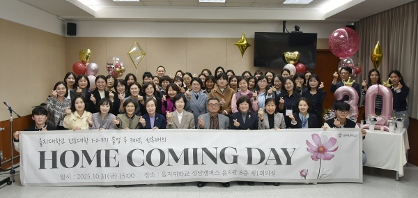 이번 행사는 1990년 서울 충무로에서 경기도 성남으로 캠퍼스를 옮기면서 개설된 간호과로 입학했던 초창기 졸업생들을 초청, 을지 간호의 뿌리를 돌아보고 미래의 비전을 함께 나누는 뜻깊은 자리로 마련됐다.이번 홈커밍데이에는 1기부터 3기까지의 동문 50여 명이 참석했으며, 박준영 을지재단 회장, 홍성희 을지대학교 총장, 임숙빈 간호대학장, 을지대학교 주요 보직자 및 간호대학 전·현직 교수진도 함께 자리해 동문들을 환영했다.행사는 ▲개회식 ▲환영사 ▲추억 영상 상영 ▲축하 공연 ▲기념 촬영 ▲만찬 등으로 진행됐으며, 참석자들은 오랜만에 찾은 캠퍼스에서 추억을 나누고 모교의 발전된 모습을 직접 확인했다.
