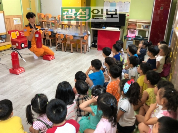 이 날 교육은 유사시 어린이들이 위급상황에서 신속한 피난과 대처가 이뤄질 수 있도록 교육하고, 선생님에게는 소방안전에 대한 이론교육, 체험위주로 실시 됐다.