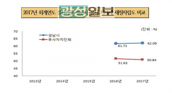 재정자립도, 재정자주도는 ‘행정안전부 재정공시 지침’에 따라 결산 기준이 나오는 오는 10월 공시된다.지난해 10월 공시된 2017년 회계연도 결산 기준 성남시 재정자립도는 62.09%(유사 지자체 50.84%), 재정자주도는 77.98%(유사 지자체 71.38%)다.