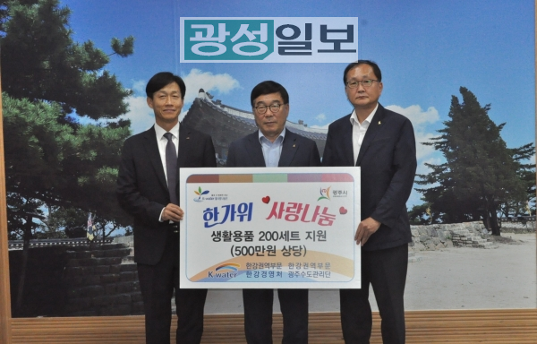 이번 사랑나눔 활동은 홀몸어르신 및 저소득가정 등을 대상으로 욕실용품 200세트(500만원 상당)를 전달하여 소외된 이웃에 온정을 나누었다. 특히 광주수도관리단 임직원 60명과 한강경영처 임직원 40명이 매월 급여 일부를 자발적으로 공제하여 조성한 물사랑나눔단 기금을 통해 기탁한 것으로