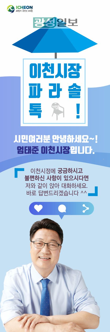 엄태준 이천시장은 “이천시장 파라솔 톡은 중앙통을 오가는 많은 시민들의 작은 시청이 되어줄 것이며, 이를 통해 시민들의 생생한 목소리를 청취하고 시정에 반영하여 살기 좋은 이천을 만들겠다.”라고 밝혔다.