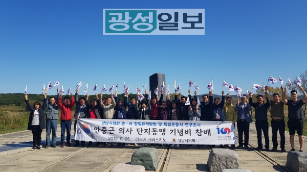 성남시의회, 크라스키노에서 안중근 의사의 항일운동 정신 되새겨 단지동맹비 앞에서 ‘대한독립만세’