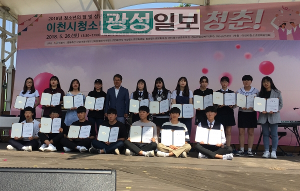 이천시(시장 조병돈)는 청소년의 달을 맞아 지난 26일 온천공원에서 2018년 청소년의 달 및 성년의 날 기념행사를 개최했다. 이번 행사는 성년 이벤트, 청소년 헌장 낭독, 모범청소년 표창, 초청공연, 청소년 동아리 공연 등 알차고 다양하게 구성됐다.