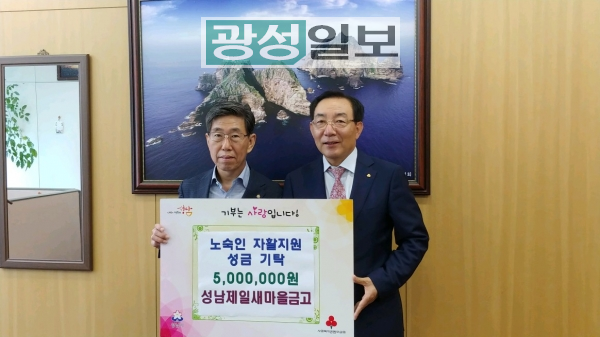 성남제일새마을금고(이사장 정광옥)가 노숙인들의 자활을 위해 써 달라며 5월 28일 성남시에 500만원의 후원금을 냈다.