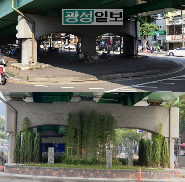 성남시(시장 은수미)는 폭염 및 미세먼지 대응방안의 일환으로 모란사거리 고가도로 아래에 약 400㎡규모의 ‘그린네트워크 구축을 위한 선형공원 조성사업’을 통한 본격적인 녹지공간을 확충하기 시작했다.