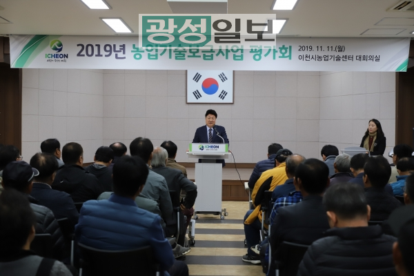 이천시(엄태준 시장)는 11일 농업기술보급 종합평가회를 이천시농업기술센터 회의실에서 관내 농업인 및 시범사업 농가 80여 명을 대상으로 실시하였다.이번 평가회는 식량작물분야, 원예특작분야, 경영축산분야의 동영상과 프리젠테이션을 통한 설명으로 농가들이 쉽게 이해될 수 있도록 진행되었다.