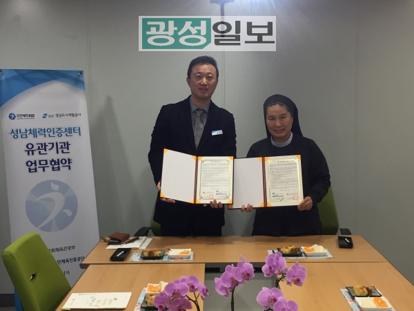 수정노인종합복지관(관장 조성갑)과 노년기 체력측정과 운동처방 지원을 위한 업무협약을 체결했다.
