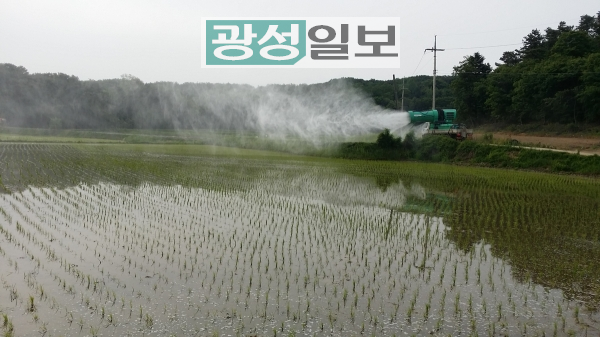 광주시(시장 조억동)가 친환경 무농약 쌀 생산 시범단지에 친환경 광역방제를 추진해 눈길을 끌고 있다.
