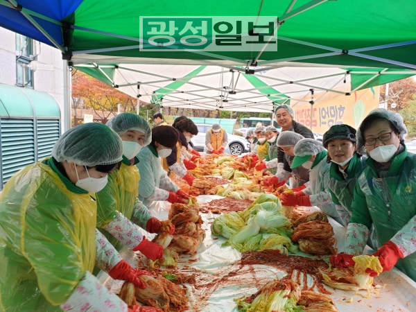 성남시 분당구 정자3동 행정복지센터(동장 채길자)에서는 11월 21일(목) 정자3동 관내 ‘이마트 분당점’ 지점 직원과 새마을 부녀회 회원들로 구성된 봉사단 40여명이 ‘사랑의 김장나눔’ 행사를 실시했다.