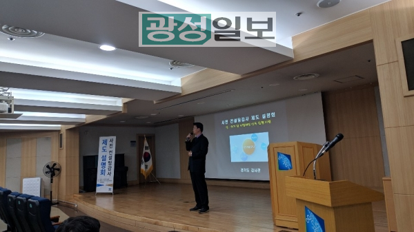 앞서 도는 지난 19일 경기도인재개발원에서 도내 31개 시군 소속 90여명의 인허가 업무담당자들이 참석한 가운데 ‘사전컨설팅 감사 제도설명회’를 개최, ▲사전 컨설팅감사 관련 정부동향 ▲상담창구 운영배경과 실행계획 및 신청방법 ▲사전 컨설팅감사 주요사례 등에 대한 안내를 실시한 바 있다.