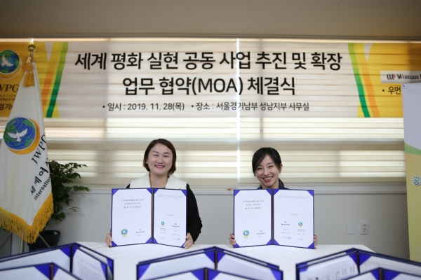 (사)세계여성평화그룹 서울경기남부지부(IWPG, 지부장 이규애)는 경기도 성남시 하대원동 IWPG 성남지부사무실에서 언론사1곳과 세계평화실현 공동사업추진을 위한 합의각서(MOA)를 28일 오후1시에 체결했다.