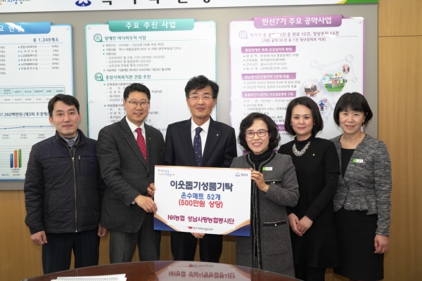 장현자 복지국장은 ‘지역사회 돌봄이 필요한 어르신들을 위해 나눔을 실천해 준 것에 감사드리며, 14년간 변함없이 이웃돕기 활동을 펼쳐온 성남시 농협임직원들의 정성을 어르신들에게 소중히 전달하겠다’며 감사를 표했다.
