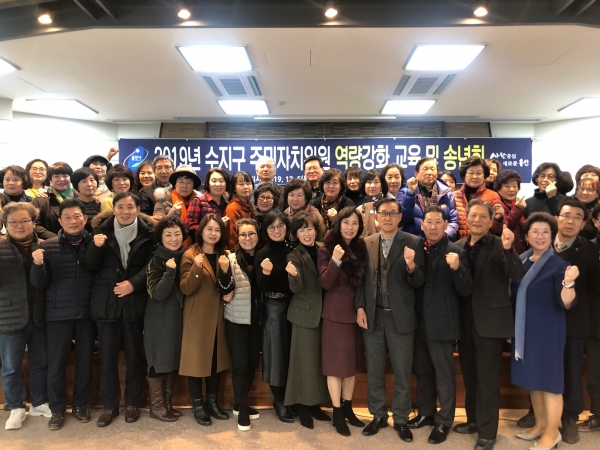 용인시 수지구는 5일 수지농협에서 관내 9개동 주민자치위원 100여명을 대상으로 주민자치위원 역량강화 교육을 했다. 이날 행사는 주민자치위원들의 역량을 강화할 수 있도록 지방재정을 주제로 한 특강, 소통과 공감능력 향상을 위한 레크레이션 등으로 진행됐다.