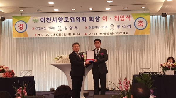 이천시향토협의회 회장 이·취임식 ' 행사가 지난 3일 오후 6시 30분 미란다 호텔 1층에서 개최됐다.