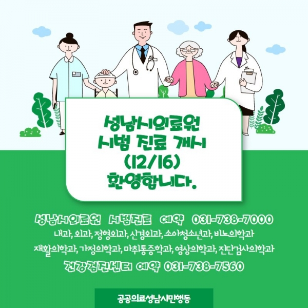 성남시의료원(원장 이중의)이 12월 16일(월)부터 총 11개 진료과를 시작으로 외래 시범진료에 들어간다.공공의료성남시민행동(공동대표 김용진, 신옥희, 최석곤)은 지난 2003년 전국 최초로 주민조례발의로 만들어지는 성남시의료원의 역사적인 2020년 3월 개원을 준비하기 위한 시범진료 시작을 환영한다.