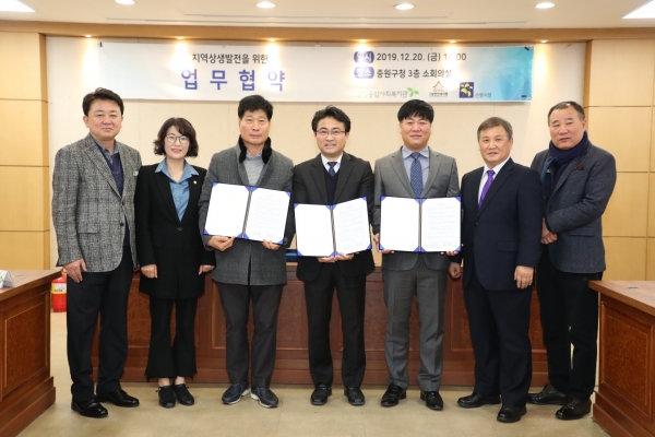 은행시장 상인회(회장 송수환)는 지난 20일 중원구청 소회의실에서 ‘지역상생 발전을 위한 전통시장 이용 활성화’ MOU를 체결했다.협약서에는 노인복지 증진과 지역상권 활성화를 위해 종합사회복지관은 경로식당 운영에 필요한 식자재를 인근 전통시장에서 구입하고, 전통시장은 품질 좋은 물품을 저렴한 가격에 공급한다는 내용을 담고 있다.