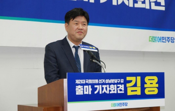 더불어민주당 소속 김용 전 경기도 대변인은 기자회견을 통해 2020년 21대 총선 성남시 분당갑 출마를 선언했다.김 전 대변인은 23일 성남시의회 1층 회의실에서 기자회견을 열고 “정치와 행정의 주인은 시민이다. 시민들과 성남시를 바꿨고, 경기도를 변화시켰고, 이제 국민을 위한 국회로 되돌려 낼 것을 약속한다.”라며 총선 출마를 공식화했다.