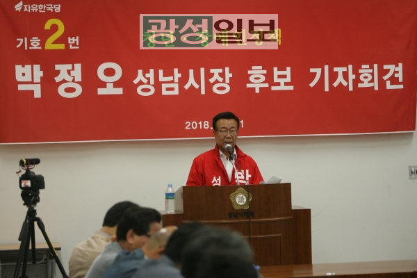 박정오 자유한국당 성남시장 후보는 11일 오전 경기도 성남시의회에서 기자회견을 가지고 ‘청년 및 장애인을 위한 정책공약을 발표했다.