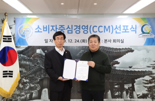 광주도시관리공사(사장 유승하)는 지난 12월 24일 최성기 노조위원장 및 임직원이 참석한 가운데 소비자 권익 인식제고 및 서비스 경쟁력 강화를 위한 소비자 중심경영(Consumer Centered Management) 선포식을 개최 했다.