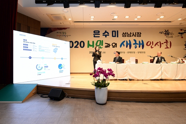 새해인사회에서는 기존 시민들의 건의사항에 대해 시장이 답변하는 방식에서 벗어나 프레젠테이션을 활용하여 2019년도 시의 주요 성과인 드론시험비행장 조성과 빅데이터 센터 구축, 성남형버스준공영제 시행 등에 대한 상세한 정보를 제공하고, 아시아실리콘밸리 성남 프로젝트와 상권활성화 및 일자리 창출 등 2020년 올해 역점 추진할 시정 주요시책과 지역의 주요사업을 보다 이해하기 쉽게 설명하여 시민들의 공감과 뜨거운 호응을 얻고 있다.