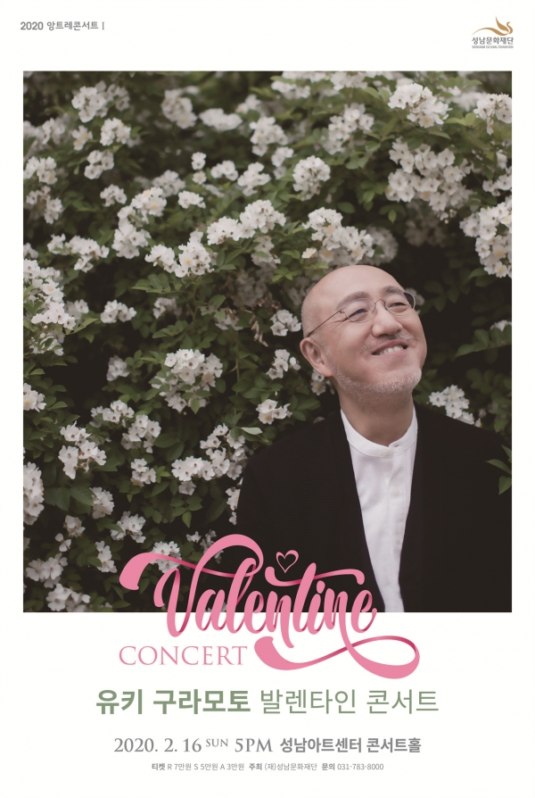 성남문화재단이 세계적인 뉴에이지 피아니스트 겸 작곡가 유키 구라모토와 함께하는 ‘발렌타인 콘서트’를 준비했다.오는 2월 16일(일) 성남아트센터 콘서트홀에서 열리는 이번 ‘발렌타인 콘서트’에서는 유키 구라모토의 대표작인 ‘레이크 루이스(Lake Louise)’부터 애달픈 마음을 표현한 ‘로망스(Romance)’, 따뜻하게 지켜보는 사랑을 그린 ‘웜 어펙션(Warm Affection)’, 변함없는 영원한 사랑을 담은 ‘타임리스 러브(Timeless Love)’ 등을 선보인다. 유키 구라모토의 유려하면서도 소박한 멜로디로 밸런타인데이 초콜릿만큼이나 달콤하고 로맨틱한 시간을 선사할 예정이다.