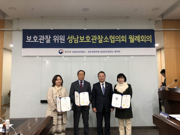 법무부 성남보호관찰소(소장 정성수)와 민간자원봉사 단체인 법무부 보호관찰위원 성남보호관찰소협의회는 1월 16일 성남시청 3층 모란관에서 보호관찰위원 약 60명이 참석한 가운데 ‘2019년 우수위원 시상 및 월례회의’를 개최하였다.