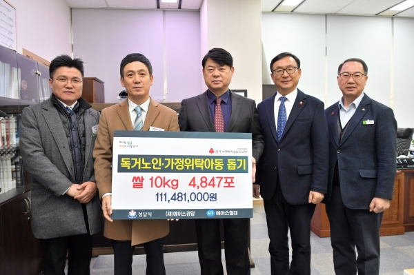 성남시 소재 재단법인 에이스경암(이사장 안유수)이 설 명절을 앞둔 1월 16일 성남시에 1억1100만원 상당의 10㎏짜리 쌀 4847포대를 맡겼다.올해로 22년째다.
