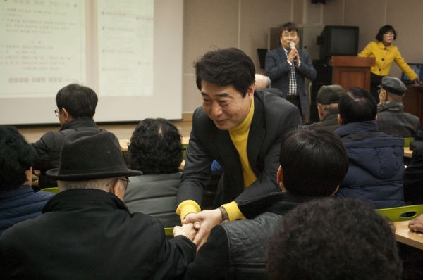 어르신들에게 설 명절을 맞아 새해 인사를 드리고 중원구 관내 경로당 새해인사 투어를 시작했다.