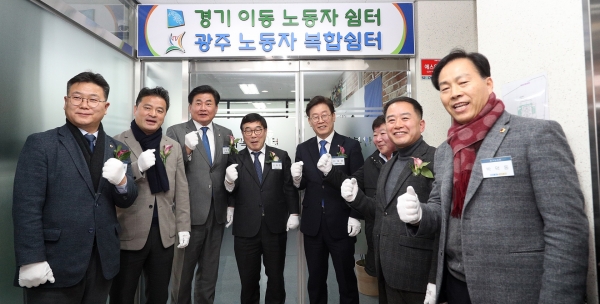 이재명 경기도지사의 민선7기 노동분야 공약사업 중 하나인 ‘경기이동노동자 쉼터’가 20일 오후 광주시 경안동에서 문을 열고 본격적인 운영에 들어갔다. 이날 개소식에는 이재명 지사, 신동헌 광주시장, 소병훈·임종성 국회의원, 박현철 광주시의회의장, 박덕동·안기권·박관열·이명동·김장일·허원 도의원, 한기석 전국대리운전노동조합 경기지부장을 비롯한 이동노동자, 관련 기관·단체 등 관계자 50여 명이 참석했다.