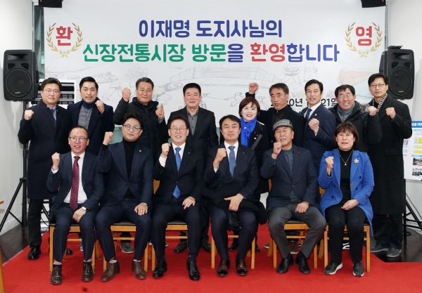 이재명 경기도지사가 설 명절을 앞둔 21일 오후 하남 신장시장에서 열린 상인들과의 간담회에서 “골목이 살아야 경기가 산다”며 상인들 스스로 전통시장의 장점을 살려 경쟁력 강화에 나서줄 것을 주문했다.이 자리에는 김상호 하남시장, 김진일·추민규 도의원, 방미숙 하남시의회 의장, 이충환 경기도상인연합회장, 전통시장 상인 등 20여 명이 참석했다.