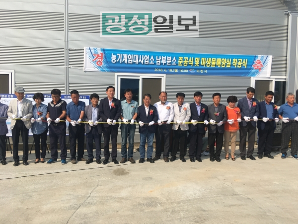 이천시(시장 조병돈)는 18일 오후 장호원읍 진암리에 있는 남부권 과학영농시설 부지에서 농기계임대사업소 남부분소 준공식 및 미생물 배양실 착공식 행사를 기관단체장 및 농업인 120여 명이 참석한 가운데 개최했다.