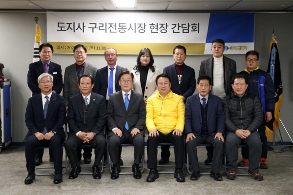 이재명 경기도지사가 20일 오전 구리 전통시장을 방문, 상인들과 소통하며 ‘코로나19’에 대한 선제적 대응으로 지역사회 감염 우려를 불식시키고, 침체된 지역경제 회복에 힘쓸 것을 약속했다.이 지사는 이날 안승남 구리시장, 임창열 도의원, 이충환 경기도상인연합회장, 조종덕 구리전통시장상인회장, 이민우 경기신용보증재단 이사장, 전통시장 상인 등 10여명과 간담회를 갖고, 이 같이 밝혔다.