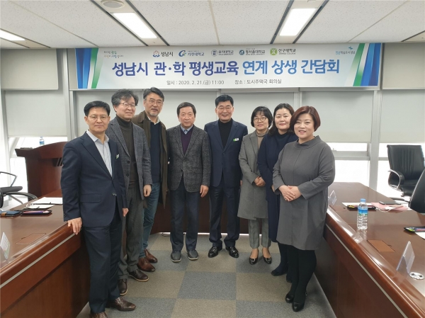 성남시는 지난 21일 14시 도시주택국 회의실에서 성남문화재단, 성남시청소년재단과 관내 4개 대학(가천대, 을지대, 동서울대, 신구대)이 함께 모여 평생교육 연계 상생 간담회를 개최했다.