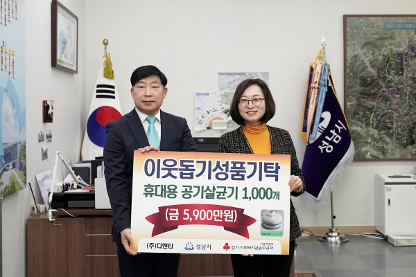 성남시 중원구 상대원동에 있는 ㈜디엔티가 코로나19 확산 방지를 위해 써 달라며 자사 제품인 휴대용 공기살균기 1000개를 2월 27일 성남시에 기탁했다.시가 5900만원 상당이다.