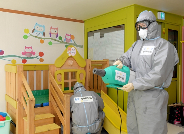 공군 15비, 성남 분당 내 어린이집 방역 실시