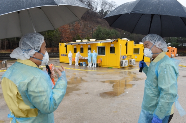 김 부의장은 황영성 경기도 북부보건위생과장으로부터 선별진료센터 현황을 청취한 후 “드라이브 스루 이동진료소는 차량에 탑승한 채로 검사를 받기 때문에 신속한 검사와 노출 시간 최소화로 감염 위험을 최대한 줄일 수 있는 장점이 있다”고 말하며, 지역사회 감염을 막고자 교대근무를 하고 있는 공무원과 자원봉사자 등 관계자 분들께 감사의 인사를 전했다.