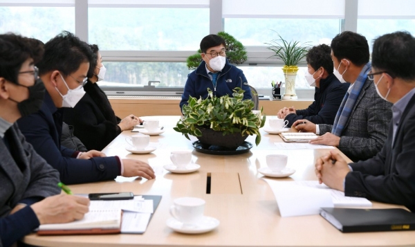 신동헌 광주시장은 최근 시장실에서 (사)한국소기업소상공인연합회 경기광주지회(회장 박지혜) 임원 등 10여명이 참석한 가운데 코로나19 관련, 애로사항을 청취했다.이 자리에서 신 시장은 소상공인들의 애로사항을 듣고 시 차원에서 추진하고 있는 지원 시책에 대해 설명했다.