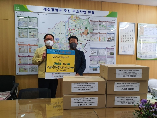 한국노총 성남지역지부(의장 전왕표)와 성남시근로자종합복지관 봉사단(단장 김영준)에서는 2020. 3. 16. 코로나19의 극복을 바라는 마음으로 생활용품 세트와 직접 제작한 마스크를 성남시에 기증하였다.