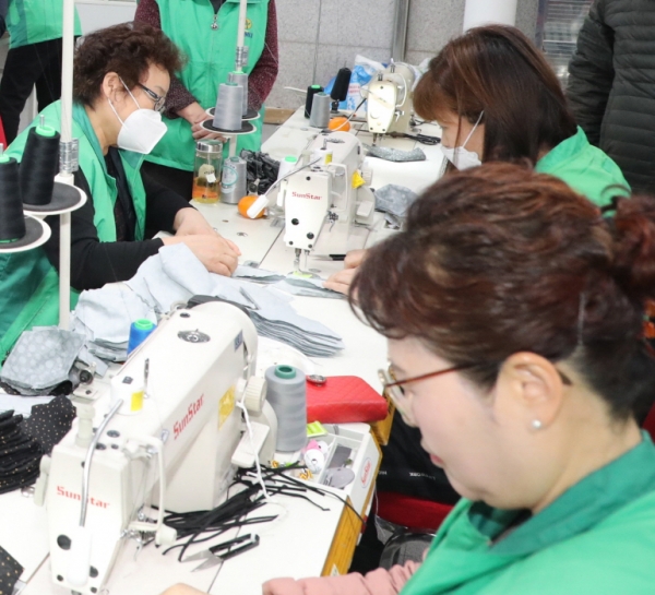 매일 6~7시간씩 하루 150여 개의 면 마스크를 제작하고 있는 새마을부녀회원들은 재능기부를 통해 코로나19 대응에 힘을 보탤 수 있어 기쁘다고 전했다. 제작된 마스크는 취약계층을 비롯해 필요한 곳에 순차적으로 배부될 예정이다.