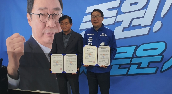 한국노총 전국공공산업노동조합연맹 대표단은 21대 총선에 출마하는 윤영찬 예비후보 사무실을 방문하여 더불어민주당 중원구 윤영찬 예비후보 지지선언을 했다,