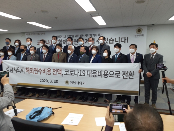 한편, 30일 오전에는 성남시 더불어민주당의원협의회(박문석의장 포함) 의원 전원은 올해 편성된 의원국외연수비 전액을 코로나19대응비용으로 전환하는데 동의를 하였다.