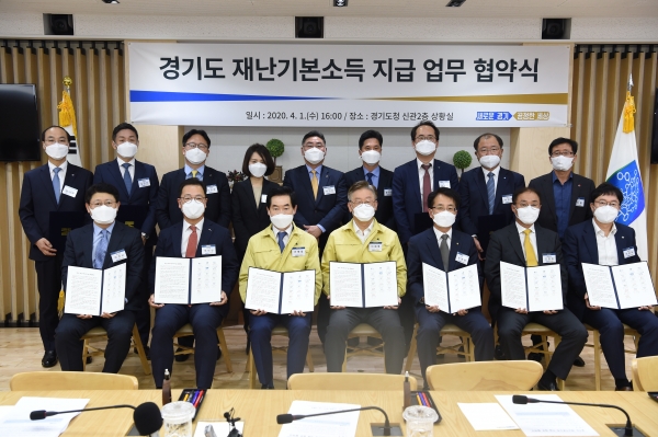 경기도는 지난달 24일 전국 최초로 코로나19 사태에 따른 위기 타개를 위해 소득과 나이에 구분 없이 도민 전부에게 10만 원씩 지급하는 재난기본소득 지급을 발표하였다. 오늘 재난기본소득 지급에 참여하는 은행, 카드사와 협력하여 지급절차 및 방법 등에 대해 세부적인 내용에 대해 기준을 마련함으로써 경기도 1,360만 도민들이 재난기본소득을 신청하고 수령하는데 만전을 기하게 되었다.