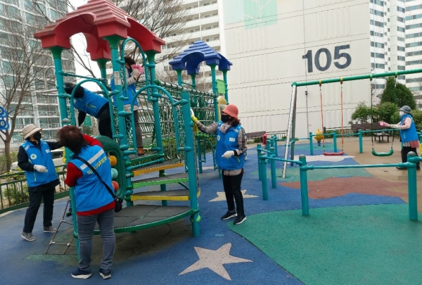이번 활동에는 90여 명의 지역자율방재단이 참여한 가운데 지원받은 소독제와 방역기를 활용하여 공공기관 청사, 다중이용시설 등 유동인구가 많은 곳 위주로 일제 방역 및 코로나19 예방 홍보활동을 전개하였다.