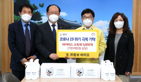 이날 전달한 분무용 소독제는 ㈜동보바이오 이기용 대표이사가 코로나19를 극복하는데 써 달라며 기탁한 것으로 광주하남교육지원청을 통해 관내 29개 초등학교에 배부할 계획이다.이와 함께 시는 관내 비인가 대안교육기관인 푸른숲발도르프학교 등 3개교에 덴탈마스크 1천매와 손소독제 100개(500ml)를 지원했다.