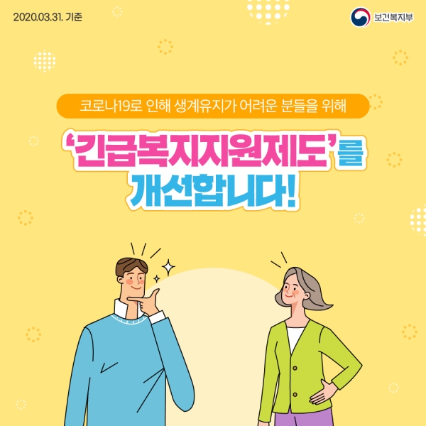 저소득 가구를 위해「긴급복지」지원사업을 7월 31일까지 한시적으로 확대 운영한다.