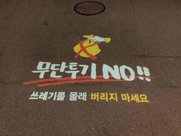 이번에 로고라이트를 설치한 7곳엔 저녁 6시부터 다음날 새벽 5시까지‘무단투기 NO! 쓰레기를 몰래 버리지 마세요’, ‘여기는 쓰레기를 버리는 곳이 아닙니다’등의 메세지가 바닥에 나타난다.
