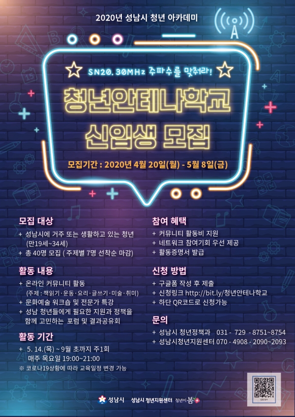 성남시는 오는 5월 8일까지 ‘청년 안테나 학교’ 신입생 40명을 모집한다.
