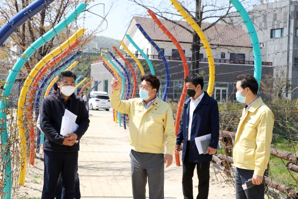 이날 이천도자예술마을(예스파크) 활성화사업 현장 점검에서 엄태준 이천시장은 마을 곳곳을 돌면서 이곳을 찾는 방문객들이 꼭 필요로 하는 것이 무엇인지를 파악하고 적극적인 사업추진을 당부했다.